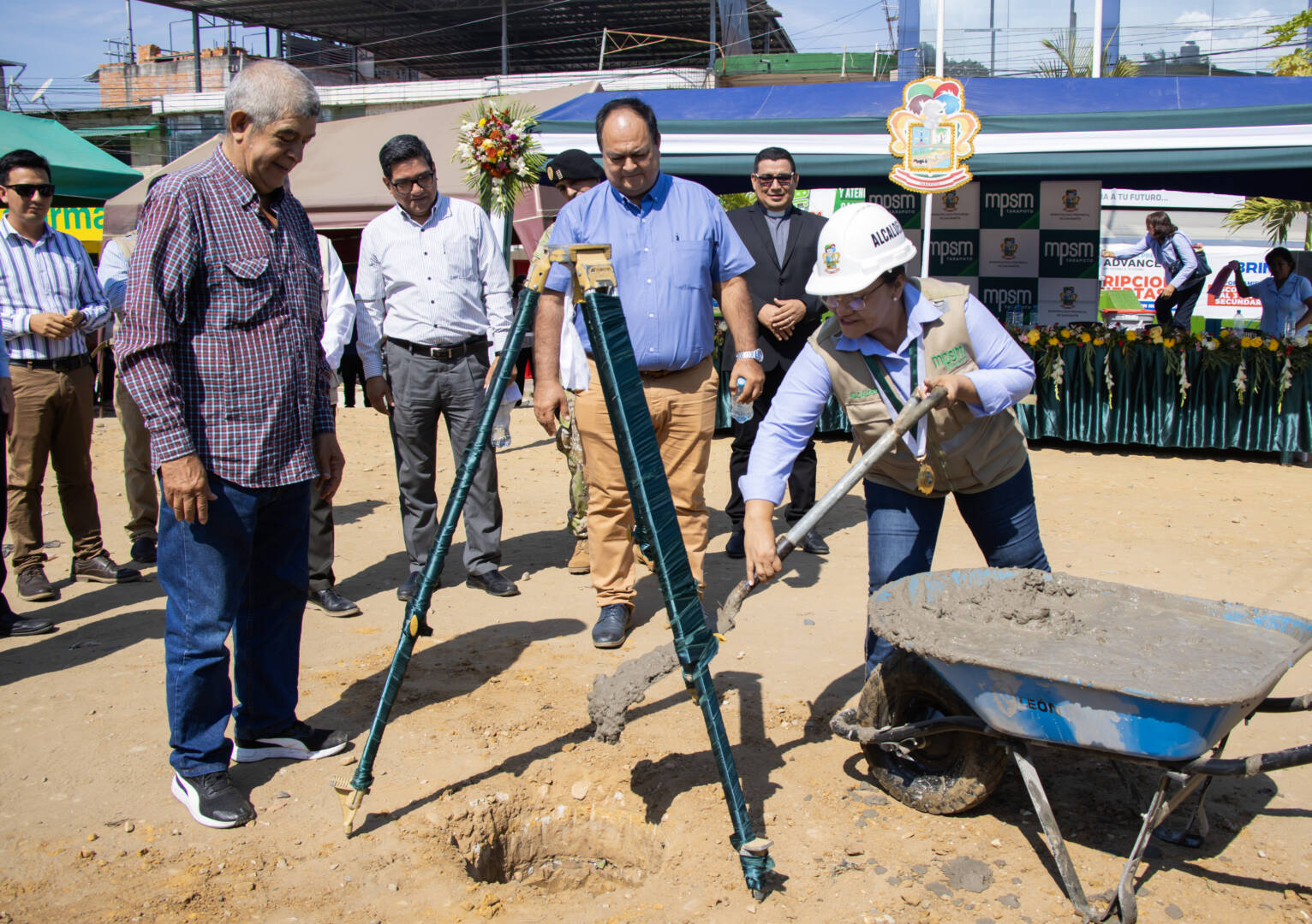 Con la presencia de los regidores Juan Rocha Díaz y Gilber Escudero Saavedra, párroco de la Iglesia Matriz de Tarapoto, autoridades locales y provinciales, gerentes, trabajadores municipales y vecinos del sector; la alcaldesa Lluni Perea Pinedo, colocó la primera piedra de la obra “Alameda la Peruanidad”.