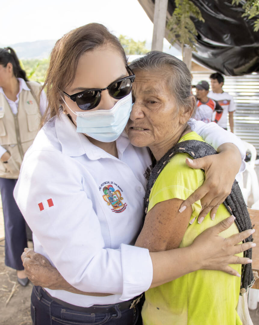 La alcaldesa de la provincia de San Martín, Lluni Perea, efectuó la entrega de ayuda humanitaria a 52 familias de las Brisas de Ricuricocha que resultaron damnificadas por las inundaciones provocadas por las lluvias torrenciales que cayeron de manera regular a nivel de la provincia de San Martín.