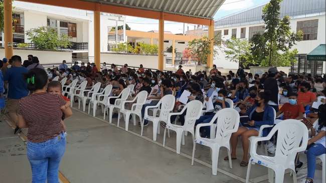 A raíz de algunos inconvenientes que se presentaron esta mañana en los exteriores de los diferentes centros de vacunaciones de la ciudad de Tarapoto, la responsable de la inoculación del vacunatorio del colegio Juan Jiménez Pimentel, licenciada Tani Arévalo Bustos indicó que los padres de familia deben acompañar a sus hijos adolescentes en la primera en la segunda dosis para evitar cualquier tipo de situación, ya que requieren del consentimiento mediante una declaración jurada de qué el menor sí recibirá su vacuna.