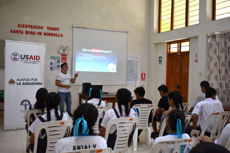 Representantes del proyecto Alianza por la Amazonía de CEDRO y USAID Perú, impartieron el primer taller sobre Educación Financiera, donde participaron 20 alumnos de cuarto y quinto de secundaria de la Institución Educativa: N° 0637 del centro poblado Santa Rosa de Mishollo.