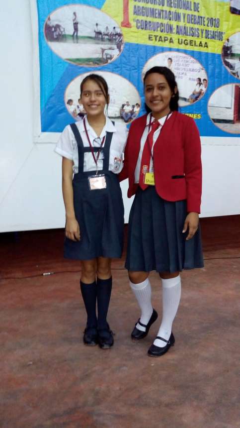 Yurimaguas. Las alumnas Sharon Masiel Paima Rodriguez (4to.Secundaria), de la Institución Educativa Industrial 029, y Nayeli Julissa Tello Campos (5to.Secundaria), de la Institución Educativa José María Arguedas, ocuparon el primer lugar en la segunda etapa del I Concurso Regional de Argumentación y Debate, desarrollado el martes 4 de setiembre de 2018 en el auditorio de la Universidad Nacional Autónoma de Alto Amazonas, organizado por la Unidad de Gestión Educativa Local de Alto Amazonas (UGELAA).