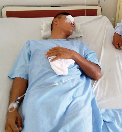 Postrado en una cama del hospital de Tarapoto se encuentra un alumno de la Escuela Técnica Policial de Tarapoto, tras perder el ojo derecho, durante un accidente mientras realizaba una práctica de instrucción, la espoleta de una bomba lacrimógena impactó en el rostro del aspirante quien fue conducido de inmediato al nosocomio de La Banda de Shilcayo.