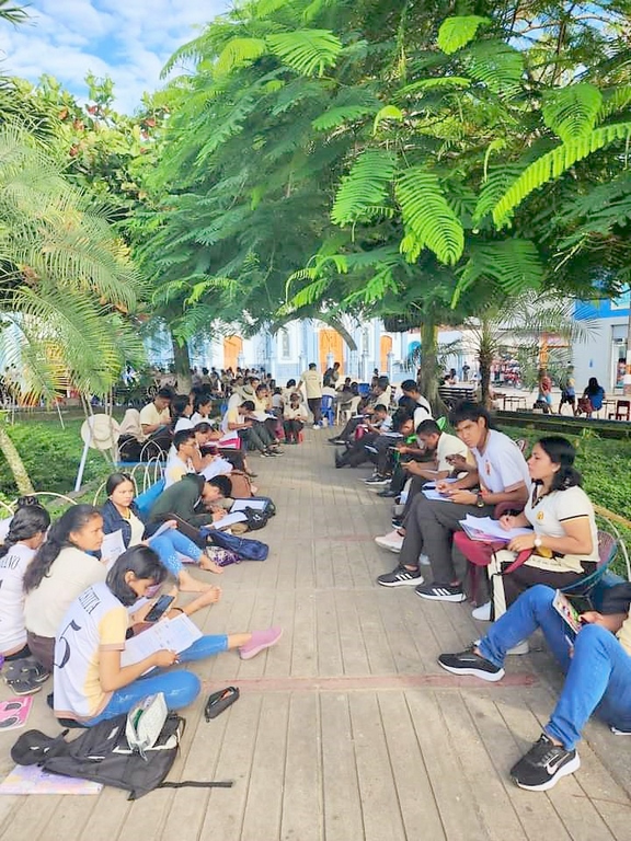 Alumnos del Instituto Superior Pedagógico estudian en la plaza