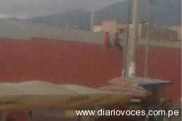 Una fotografía publicada en el Facebook pone en evidencia la temeraria acción de dos jóvenes estudiantes de la institución educativa Juan Jiménez Pimentel, en la fotografía tomada por una madre de familia de otra institución se ve como el par de escolares trepan a una enorme pared que da a la Avenida Alfonso Ugarte sin medir el enorme peligro que esto representa.