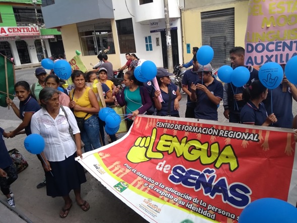 Moyobamba. Un grupo de alumnos sordo y padres de familia de la Asociación COPANIJOSA y de la Institución Educativa de Personas Sordas, Charles Michel De Lépeé del distrito de Nueva Cajamarca realizaron un plantón en el frontis de la Dirección Regional de Educación de San Martín, con la finalidad de solicitar apoyo para la creación de un colegio para “sordomudos” y la contratación de docentes. Según refiere la representante de la asociación, hace más de dos años enviaron hace mucho tiempo la documentación donde fundamentan la necesidad urgente de contar con este centro educativo especial, lamentablemente hasta la fecha no obtuvieron respuesta, al contrario, tienen conocimiento que dichos documentos fueron archivados. El terreno donde se pretende construir el colegio se encuentra ubicado en la Alameda del Edén en el distrito de Nueva Cajamarca y tiene en total son 45 alumnos que vienen impartiendo conocimiento en el aprendizaje de lengua de señas con el poco recurso que cuenta la asociación. Lamentablemente no pudieron conversar con el Director Regional de Educación Orlando Vargas Rojas porque se encontraba de viaje en la ciudad de Tarapoto, tampoco pudieron conversar con algún responsable sobre el tema, por eso instaron a las autoridades a través de los medios de comunicación para que respondan a los documentos y prioricen la construcción del primer Colegio de Lengua de Señas del Alto Mayo. (Franclin Laván)