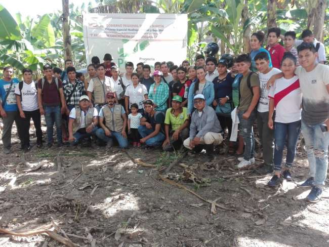 Fueron 51 alumnos del Instituto Superior Tecnológico Público Francisco Vigo Caballero de la ciudad de Uchiza, quienes desarrollaron una pasantía a la parcela demostrativa de la asociación de productores de plátanos frutas y derivados Tocache, con el objetivo de reforzar los conocimientos teóricos recibidos en clase con la práctica. La actividad estuvo dirigida por los técnicos del PIP Plátano de la Dirección de Desarrollo Agropecuario del Proyecto Especial Huallaga Central y Bajo Mayo. Los estudiantes de la carrera técnica de agropecuaria llegaron hasta el sector Huairanga, ubicado a escasos 20 minutos de Tocache, en el lugar fueron recibidos por los integrantes de la asociación, los mismos que se encargaron de dirigir el recorrido de las diferentes parcelas de plátano, y conocer de cerca de la producción de diferentes variedades.