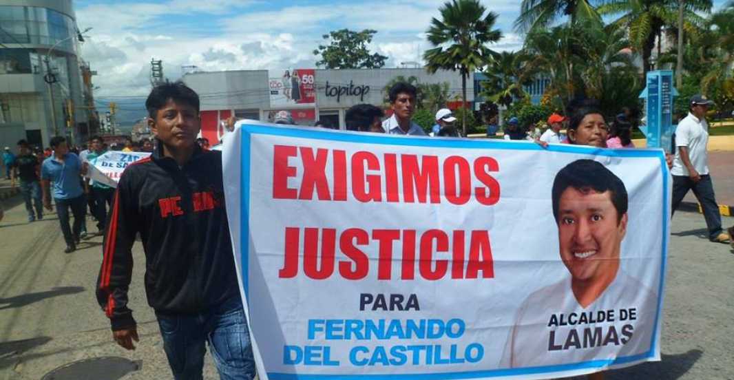 El pasado fin de semana cerca de dos mil almas, todos provenientes de la provincia de Lamas llegaron a Tarapoto y luego de concentrarse salieron a una marcha en respaldo a su alcalde, Fernando Del Castillo Tang, cuyas pancartas tenían mensajes contra los jueces que llevan el caso y el fiscal de Lamas, a quien aluden cuestionamientos diversos sobre su labor.