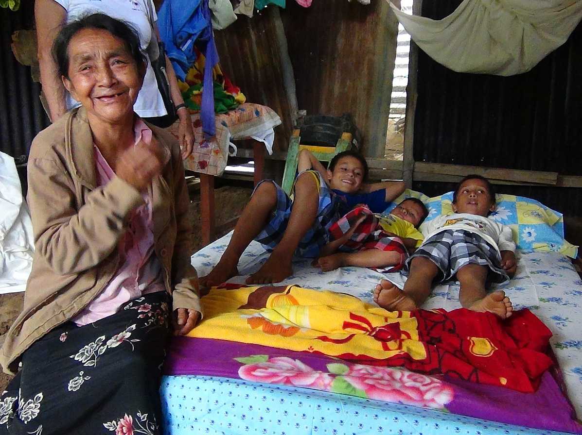 Ayer dimos cuenta del drama de una anciana identificada como Grimanesa Isuiza Isuiza, quien viene criando a su tres nietos, luego que su hija muriera hace cuatro meses, el apoyo solidario no se hizo espera, Manos Unidas llevó colchones, ropa y sábanas que necesitaban de manera urgente porque hace muchos años dormían sobre tablas que los afectaba la columna.