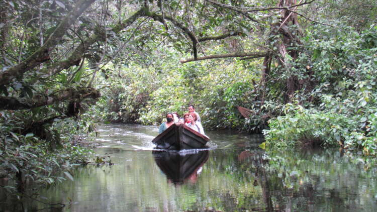 Desde que llegas a Santa Elena sientes el contacto con la naturaleza. Tras caminar por un muelle de madera, tienes la posibilidad de adentrarte entre la selva peruana a bordo de canoas que recorren las oscuras aguas del Río Negro.