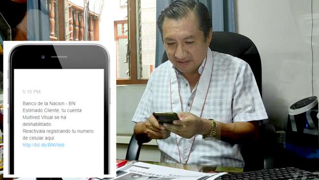 Los delincuentes cibernéticos captan a sus víctimas mediante mensaje de texto de la siguiente manera: “Banco de la Nación: Se realizó una compra con su Tarjeta Multired 4214** por el monto de S/. 337.13, si no reconoce anule aquí: https://bit.ly/ZonaSeguraBNPeru” y cuando las víctimas ingresan a ese enlace les piden datos y terminan por revelar su clave y número de tarjeta y con ello les roban el dinero de sus ahorros.