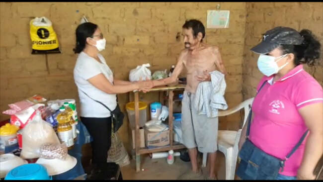 El Comité de Damas del Proyecto Especial Huallaga Central y Bajo Mayo, con el apoyo del Consejo Directivo y personal administrativo, entregaron productos de primera necesidad al señor Carlos Gómez Isla de 85 años, indigente que vive de la caridad de sus vecinos.