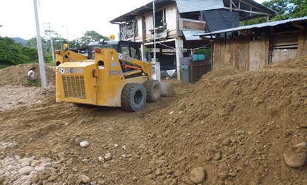 Juanjui. El alcalde provincial de Mariscal Cáceres José Pérez brindó apoyo a una humilde madre de familia del Asentamiento Reynaldo Bao del barrio San Juan, que se vio seriamente afectada por la inundación de la quebrada de Juanjuicillo.