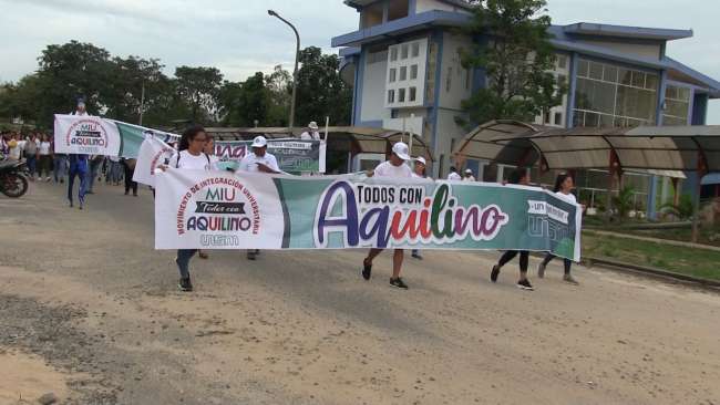 La fiesta electoral se ha iniciado en la Universidad Nacional de San Martín; en la víspera un grueso número de estudiantes realizaron una colorida marcha en respaldo al Movimiento de Integración Universitaria – MIU, organización universitaria que lleva como candidato a Rector al Dr. Aquilino García Bautista, al Vicerrectorado Académico a la Dra. Roxana Hidalgo Pozzi y al Vicerrectorado de Investigación a la Dra. Alicia Bartra Reátegui, una terna que apunta a tomar riendas de la administración en nuestra primera casa superior de estudios.