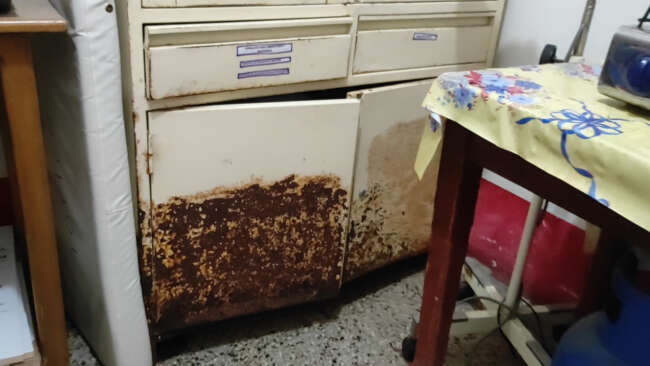 Ayer se pudo constatar que en el Área de Emergencia de ese establecimiento existen mesas, armarios y porta suero de metal que están oxidados, incluso un armario donde guardan ropa esterilizada de los pacientes y del personal asistencial están a simple vista en pésimas condiciones debido a la antigüedad y hasta el momento no hay información de cuándo serán reemplazados.