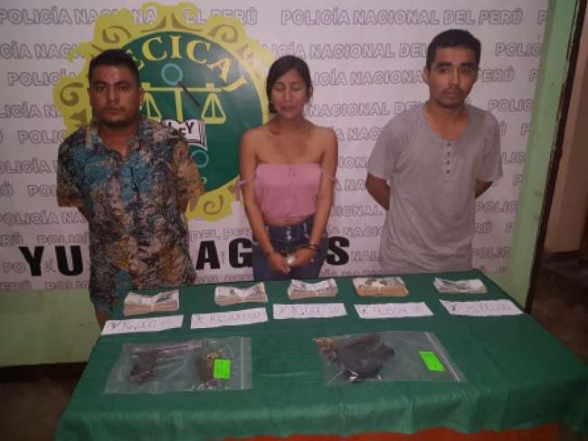 Félix Jhonatan Pérez Burgos (30), Mayct Jesús Adán Gómez Vilchez (23) y Katherine Elizabeth Saavedra Martos (27), naturales de la ciudad de Chiclayo, fueron aprehendidos a las 12 horas del día citado en la empresa de transportes Autos San Martín.