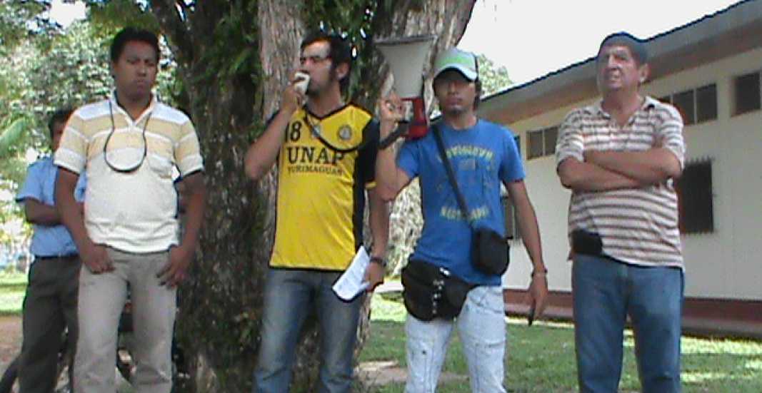En las instalaciones de la Universidad Nacional de la Amazonía Peruana UNAP, el comité de lucha de la Federación de Estudiantes Universitarios, bajo la presidencia del alumno, Alberto Inga Valles, dirigió la reunión con la presencia de los dirigentes del Frente, quienes solo escucharon y no opinaron.
