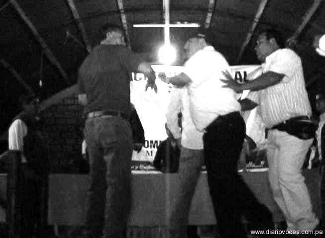 La bronca empezó cuando se increpó al presidente del comité provincial Jorge Pérez Vásquez de querer direccionar su apoyo al precandidato Gastelo Huaman, y sea el que encabece la lista a la alcaldía de Moyobamba.