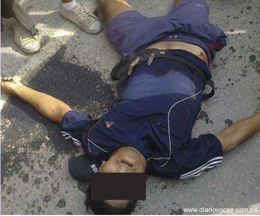Cuatro disparos de arma de fuego, pistolas en este caso, cegaron la vida del conductor del motocar Lenin Baca, quien bañado en sangre por las heridas en el pecho y el abdomen cayó muerto al instante y tendido en el pavimento fue abandonado en la vía nacional.