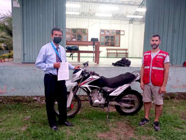 Preocupados por la seguridad de los trabajadores y con la finalidad de brindar las máximas facilidades a los auxiliares notificadores del Distrito Judicial de San Martín, quienes se desplazan por diferentes lugares para cumplir su misión de hacer llegar las notificaciones al destino indicado, sorteando la geografía de la zona y las inclemencias del tiempo, el presidente de la Corte Superior de Justicia de San Martín, Heriberto Gálvez Herrera, dispuso la entrega de una motocicleta al personal de notificaciones de la subsede de la provincia de El Dorado-San José de Sisa, señor Tony Tananta Paredes.