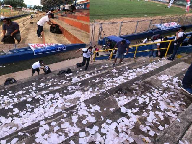 Tras el clásico muchos regresaron a sus casas, mientras que este grupo de 32 integrantes se quedaron hasta más de una hora y media haciendo la limpieza de nuestro primer coloso deportivo.