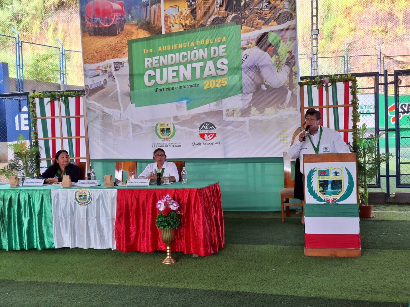 La Municipalidad Distrital de La Banda de Shilcayo realizó este viernes 30 de mayo su audiencia pública en la cancha sintética La Novia, en cumplimiento de la Ley N.° 31433, que establece la obligatoriedad de dos audiencias públicas anuales por parte de los gobiernos locales. La jornada se desarrolló conforme al Reglamento Marco aprobado mediante Ordenanza Municipal N.° 005-2023/MDBSH, con el objetivo de garantizar la transparencia y la participación ciudadana.
