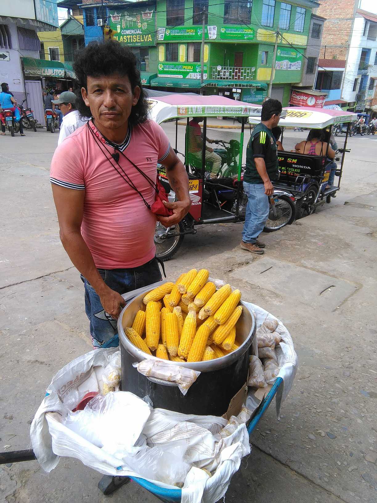Un vendedor ambulante identificado como Ewer Paredes Paredes, hace unos días hizo noticia tras ser intervenido por agentes de la Policía Municipal de Tarapoto, quienes derribaron su carretilla regando en el suelo los choclos sancochados que ofrece a sus clientes, actualmente superó el mal momento y sus ventas se incrementaron cuando es reconocido por la gente por las calles.
