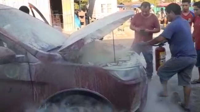 Ayer por la tarde un automóvil semi nuevo se incendió su motor, por razones que se desconocen hasta el momento. El hecho se produjo frente a la plaza de Armas del centro poblado de Consuelo, en el distrito de San Pablo, provincia de Bellavista. Vecinos del lugar apoyaron al conductor para sofocar las llamas, ya que él por el momento no pudo salir del vehículo, porque su puerta se trabó.