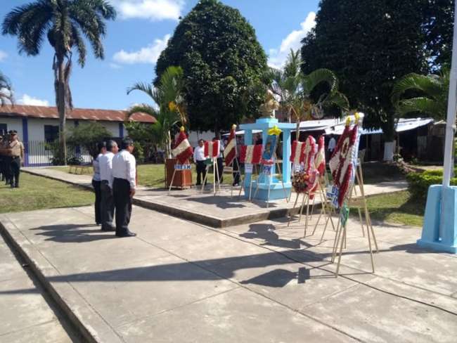 Moyobamba. Tal como ocurre el 7 de junio de cada año, diversas autoridades de la provincia de Moyobamba, rindieron ayer homenaje al coronel Francisco Bolognesi, inmolado hace 139 años en la Batalla de Arica, durante la Guerra del Pacífico, y se renovó juramento a la Bandera. El acto central se celebró en la plazuela Bolognesi, o conocido también con el parque de Tomanguillio, lugar donde está ubicado el busto del héroe nacional, y fue encabezado por las autoridades municipales, funcionarios y trabajadores de los sectores públicos, así como escoltas de algunas instituciones educativas.