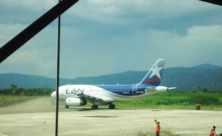 Pasajeros que llegaron a Tarapoto procedentes de Lima, en el vuelo 2251 de la empresa aérea Lan Perú, se llevaron un gran susto, luego que la aeronave sufriera en percance al momento de aterrizar en el aeropuerto Guillermo del Castillo Paredes, de esta ciudad, cuando una ave de rapiña impactó en la parte del morro del avión, ocasionando una fisura en el fuselaje.