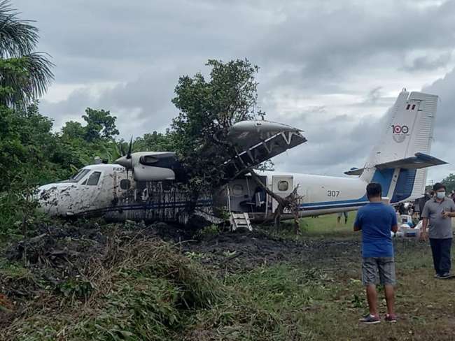 Un avión Twin Otter 307 de la Fuerza Aérea del Perú (FAP) de doce pasajeros terminó a un costado del aeródromo del distrito San Lorenzo, en la provincia Datem del Marañón, región Loreto, luego de sufrir un despiste al momento de aterrizar.
