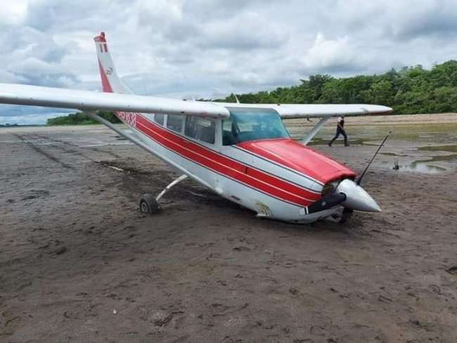 Una avioneta de la empresa área SARU con matricula OB-1838, ayer salió desde la ciudad de Yurimaguas, con destino a San Lorenzo, tuvo un aterrizaje forzoso en una playa, situado al margen izquierdo del río Huallaga, tras fallas mecánicas en el motor.