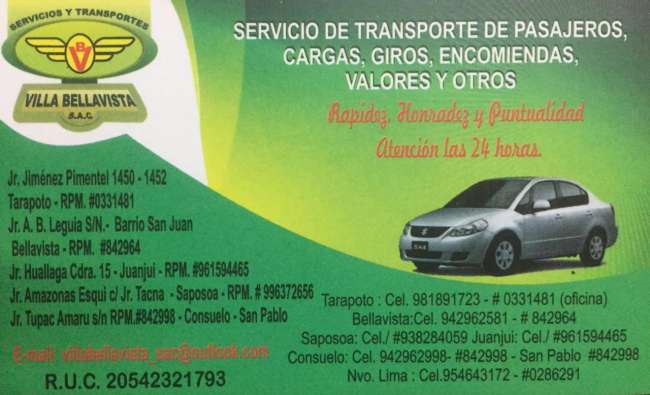 Avisos Clasificados: Servicios y Transportes Villa Bellavista