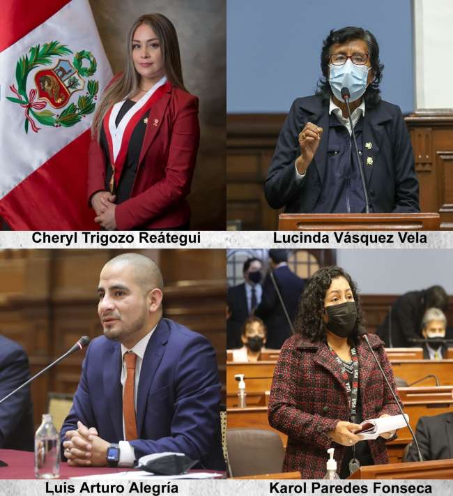 De este grupo, la mayor cantidad de parlamentarios pertenece a Fuerza Popular. Se trata de Rosangella Barbarán Reyes (Fuerza Popular), Carlos Ernesto Bustamante Donayre (Fuerza Popular), María del Pilar Cordero Jon Tay (Fuerza Popular) y Mery Infantes Castañeda (Fuerza Popular).