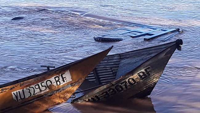 Balsa cautiva que transportaba camión volquete se hunde en el río Huallaga
