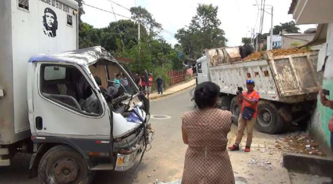 El volquete quedó averiado y con el cardan esparcido por todos lados. El conductor del camión identificado como Luis Alberto Sánchez, manifestó que se percató del hecho, pero no pudo girar, porque tenía varios mototaxistas en la parte posterior y ellos pudieron llevar la peor parte. La cabina de su vehículo quedó destrozada, ahora espera que alguien se responsabilice.