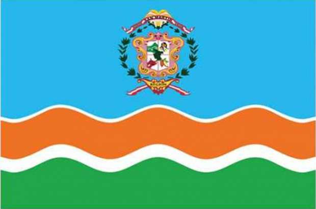 Bandera oficial de San Martín, más parece una banderola fujimorista, que un simbolo de la región, con un pésimo diseño, donde el color verde casí no se nota.