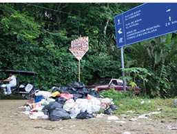 Este terrible espectáculo se ha vuelto común en una zona que debería ser un área cuidada, mantenida ecológicamente no solo por las autoridades sino también por los colindantes de la zona; sin embargo malos vecinos han hecho de ese lugar justo donde está el letrero de aviso de la existencia de los dos ojos de agua y del ingreso al ACR , un basurero donde a diestra y siniestra arrojan sus desperdicios caseros en enorme proporciones que da un mal aspecto al sector.