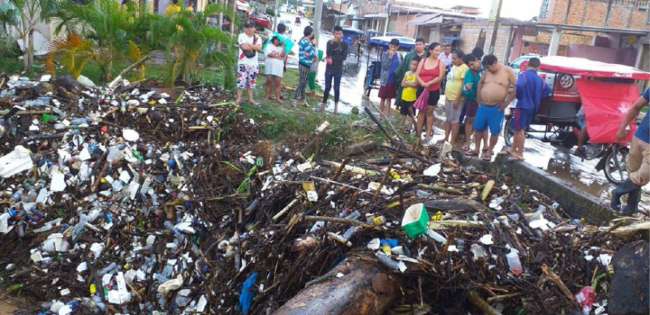 El distrito de La Banda de Shilcayo fue ayer la más afectada con la fuerte precipitación pluvial registrado durante la tarde. En un puente ubicado en el jirón Ramón Castilla, las aguas de la quebrada Choclino se represaron por los troncos que fueron arrastrados y en cuestión de segundos una gran cantidad de basura quedó acumulada en ese lugar, generando preocupación a los vecinos.