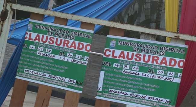 La Municipalidad Distrital de Morales procedió a la clausura por 4 días de la discoteca Bechilinos (ExPachanga) por haber infringido la Ordenanza Municipal que regula los ruidos molestos.