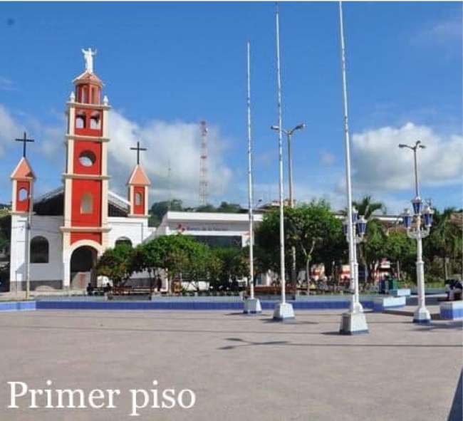 En este llano de altura destaca una inmensa plaza principal, con la parte monumental descuidada por el gobierno local. Al centro dos estatuas de hombres desnudos con expresión vallejiana. Sus grandes veredas reciben, cuando cae el Sol, a grupos entusiastas de niños y jóvenes amantes de la danza, tanto la típica tradicional selvática como la de moda reguetonera.