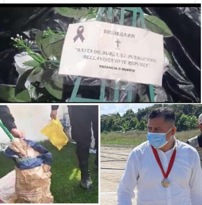 Es un hecho lamentable, hoy por hoy temo por mi vida, hice de conocimiento a la policía, estoy ingresando la solicitud de garantías por mi vida a la subprefectura, personas inescrupulosas han botado unos bultos donde aparecía un ramo blanco a mi nombre y donde indicaba “vacancia o muerte”; todo esto se enmarca relativamente con este señor dueño de una radio, el Señor Mariano Cárdenas y un comunicador el Señor Pablo Torres que todos los días tocan mi nombre, por eso es que se ha solicitado también les aperturen una investigación a la fiscalía por “incitar al odio hacia mi persona”, todos los días en su programa de 6 a 8 de la mañana se dedican a hablar sobre mi persona y más que todo a denigrar y manchar mi imagen.
