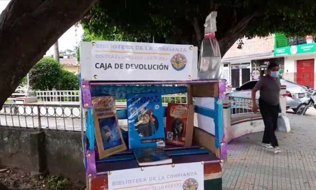 Inti Franco Gómez de Loaiza, Suboficial de la Policía Nacional del Perú, indicó que los libros se encuentran en una caja de frutas, porque no solo el alimento es de primera necesidad, sino también la lectura y que la finalidad de esta iniciativa es incentivar a las personas a realizar actividades diferentes.
