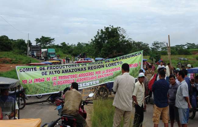 Yurimaguas. Cientos de productores de arroz del distrito de Yurimaguas, se posesionarán hoy a la altura del óvalo, ingreso de la vía de Evitamiento, como única medida de presión reiniciando la huelga nacional agraria.