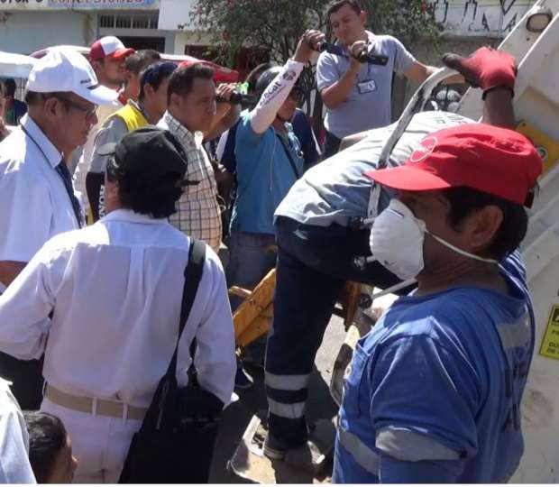 Hasta el lugar llegaron fiscalizadores de la Municipalidad Provincial de San Martín, quienes verificaron lo sucedido y a pesar del fuerte olor muchas personas se acercaron al camión recolector e indicaron que se trataba de un aborto, sin embargo esa versión no fue confirmada, ya que la bolsa plástica con la sangre fue triturada por la compactadora.
