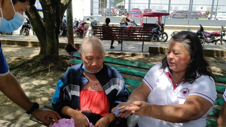 Ante esta situación las integrantes de la asociación de damas Manos Unidas tras conocer el caso organizaron una rápida colecta, logrando conseguir dinero para la compra de víveres y también para entregarle a ella para la compra de sus medicamentos, ya que solamente vive con un hijo, quien no puede trabajar, por estar pendiente de ella.