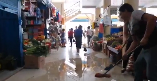 Las aguas servidas afectaron a los comerciantes no solo con la inundación de algunos puestos, también con el olor nauseabundo; ellos tuvieron que retirar con escobas y trapeadores para evitar que siga ingresando a los stands. Emita Rengifo Domínguez presidenta de los comerciantes señaló que el colapso se registró en tres buzones, responsabilizando directamente a la administración por no realizar el mantenimiento respectivo de todos los servicios higiénicos. Resulta extraño que una obra recientemente culminada tenga estos problemas, que no solo perjudica a los comerciantes, también a la población que concurre diariamente, contaminando el ambiente y poniendo en peligro la salud de la población ante el contacto de las aguas servidas con los productos que se expenden para consumo humano. (Franclin Laván)