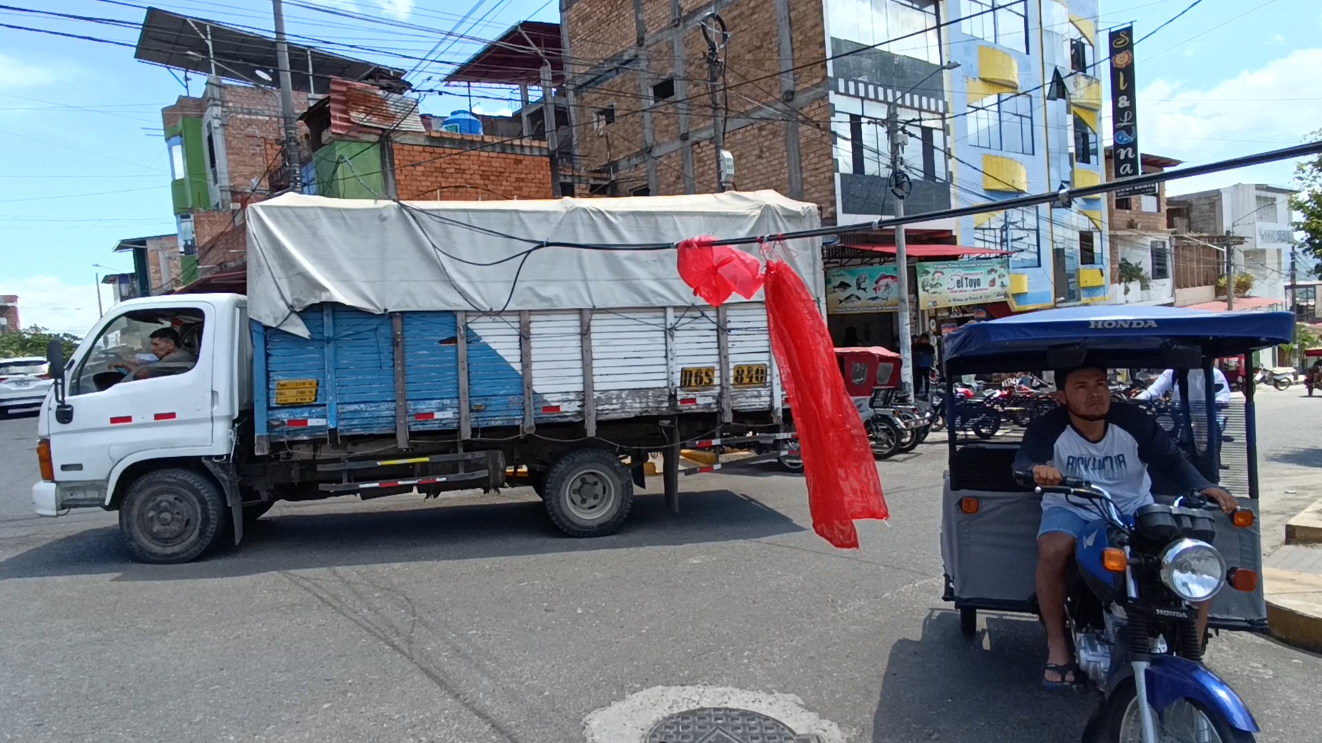 Durante tres días, los vecinos del barrio Comercio de Tarapoto vivieron momentos de tensión debido a varios cables de telefonía que colgaban peligrosamente muy bajos en la intersección de los jirones Nicolás de Piérola con Tahuantinsuyo. Estos cables habían sido arrancados por un camión que, a pesar de las restricciones municipales, ingresó a la zona.