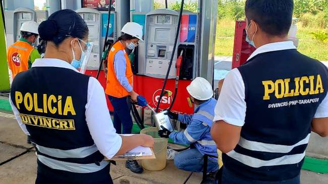 Las acciones desarrolladas hoy, comprendieron la toma de muestras de combustible y revisión documentaria, por parte de personal de Osinergmin, personal policial y fiscalizadores municipales de la provincia de San Martín.