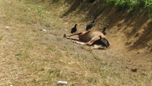 El animal muerto es devorado por los carroñeros y la zona se ha convertido en un peligro para los transportistas, no solo por el olor, sino también porque podría provocar algún accidente.