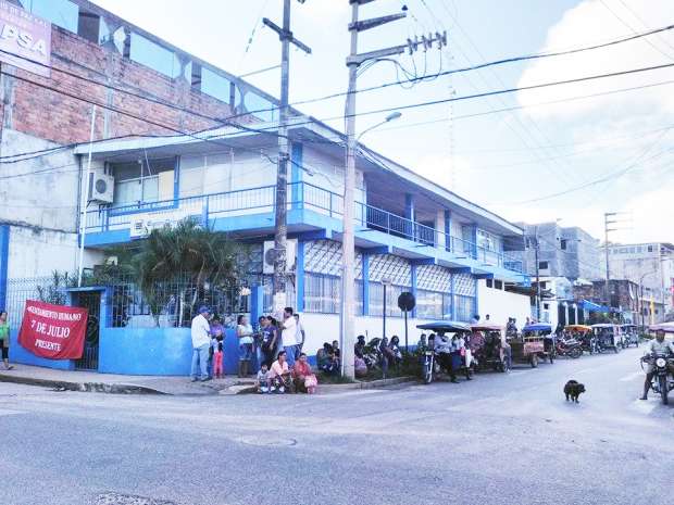 Moradores de los asentamientos humanos Rosalvina Camus, 7 de Junio, Maimi, Filadelfia, Isla de Jair, se posesionaron ayer frente a las oficinas de Electro Oriente Yurimaguas, exigiendo a los funcionarios de esta empresa que instalen el servicio eléctrico por igual en todas las viviendas, y alumbrado público en sus calles.